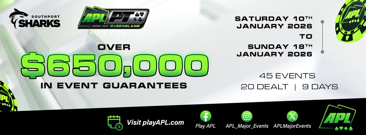 APLPT Queensland returns to Southport Sharks from 10–18 January 2026, delivering nine days of high-energy poker action and over $650,000 in guaranteed prize pools.